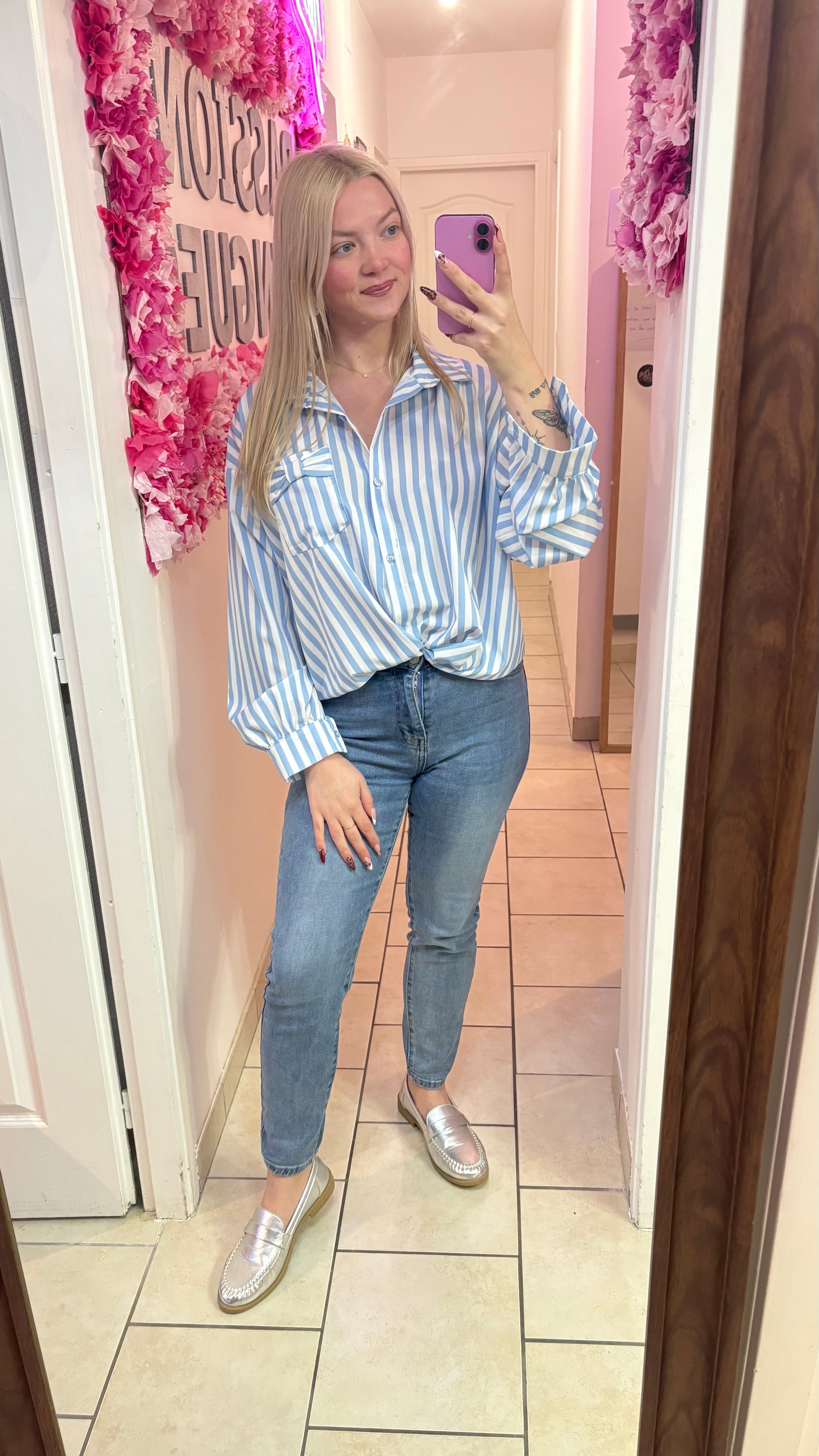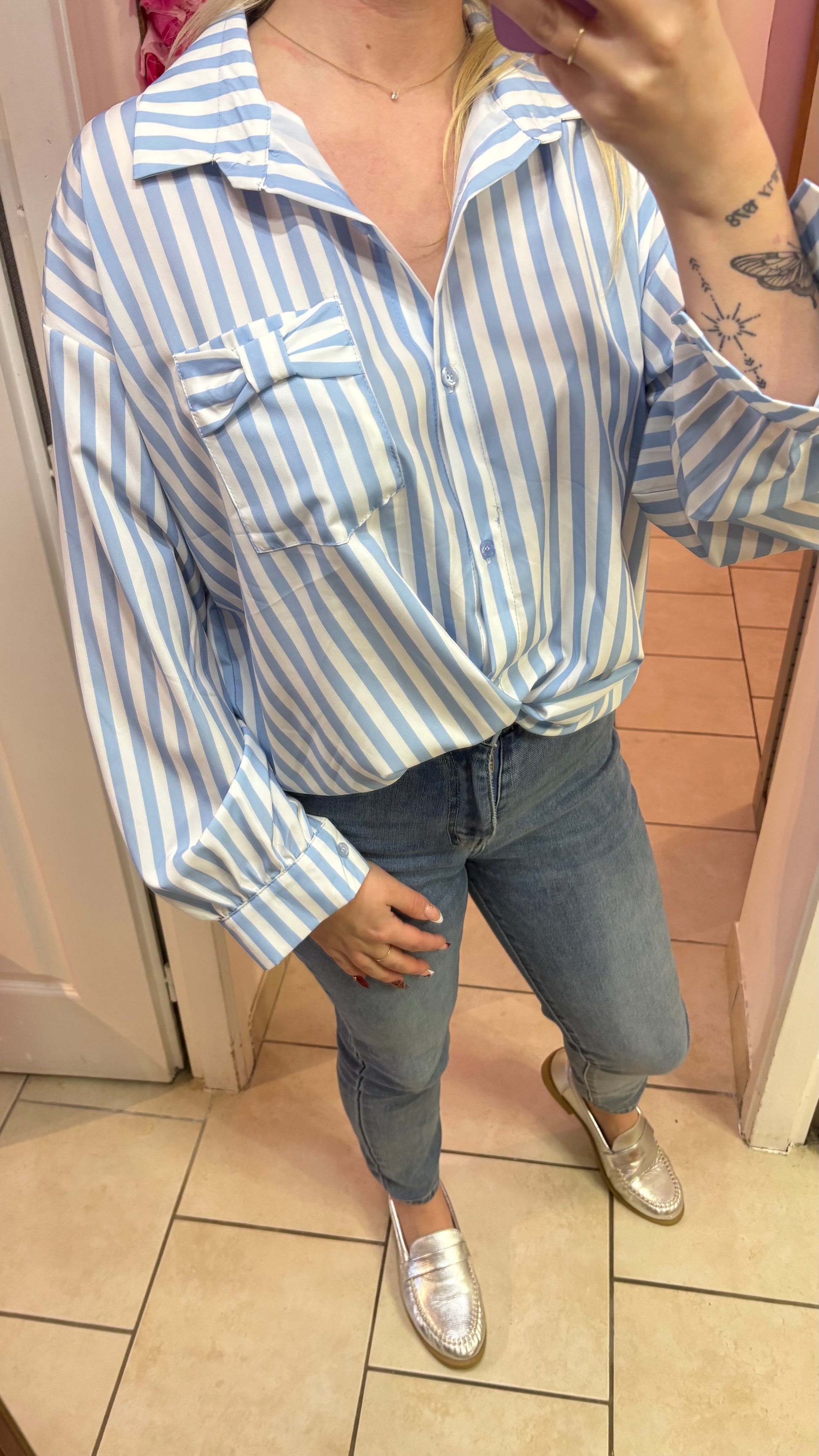 Chemisier bleu à noeud