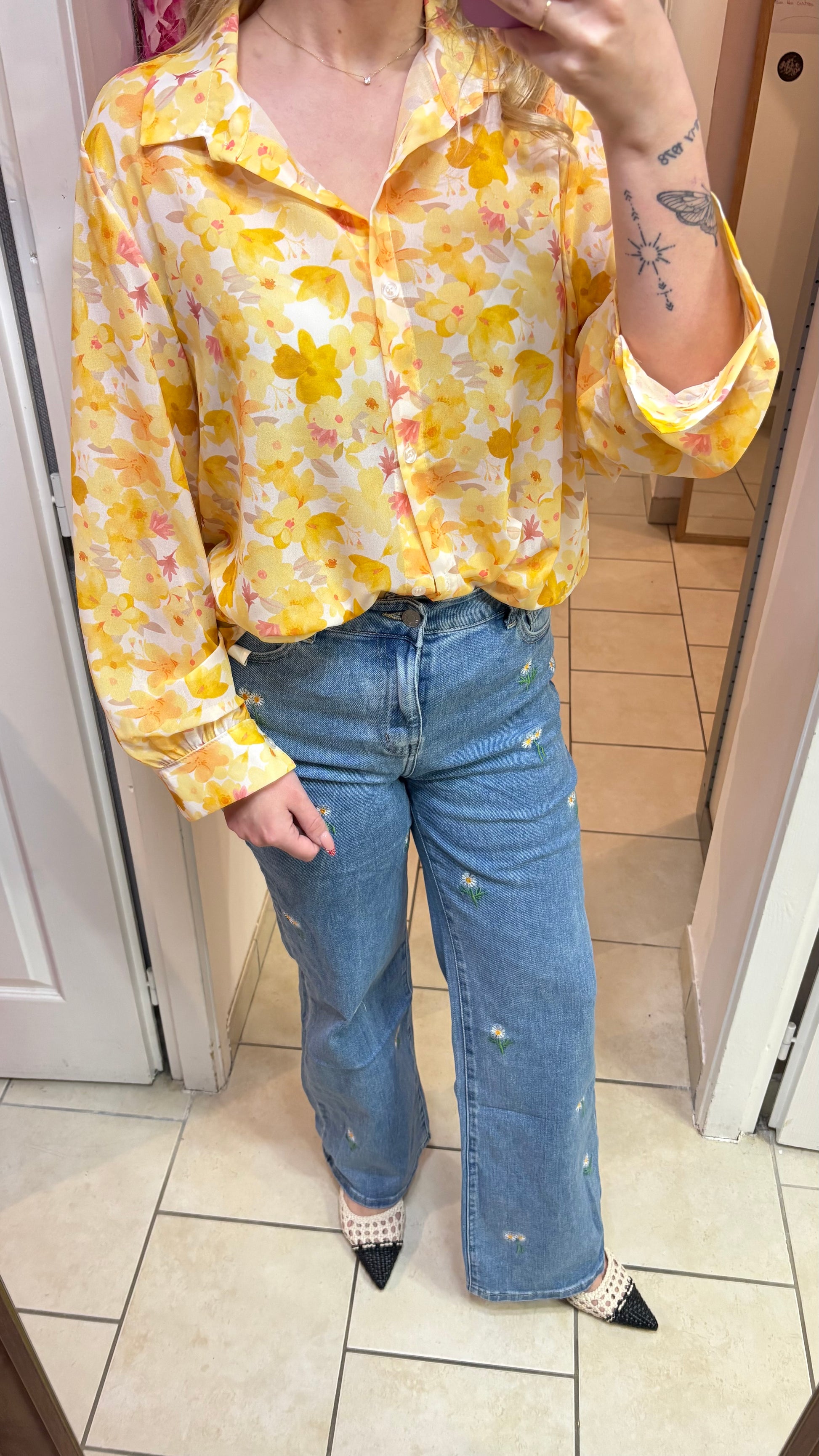 Chemisier jaune fleuri