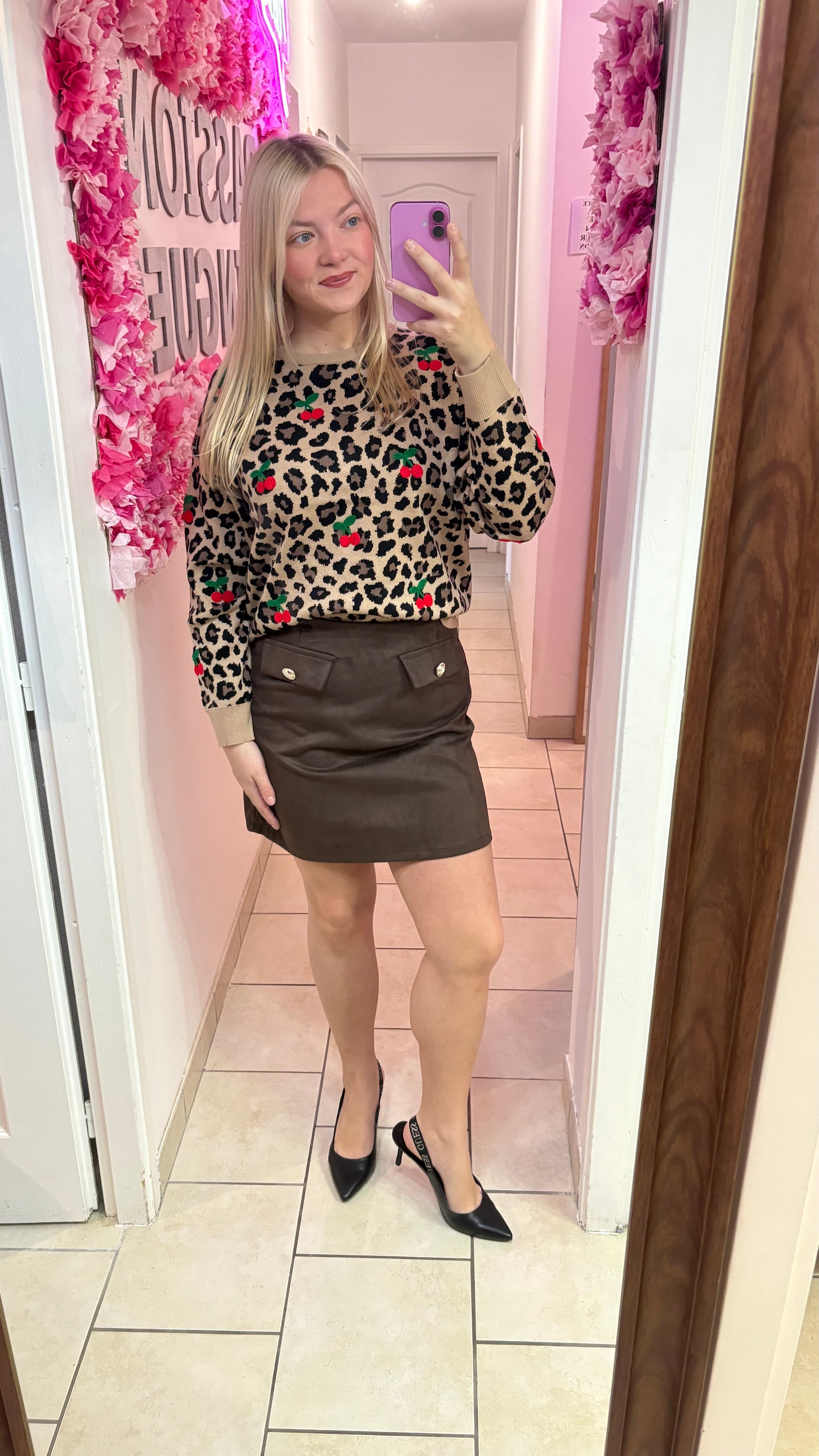 Pull Léo cerise camel